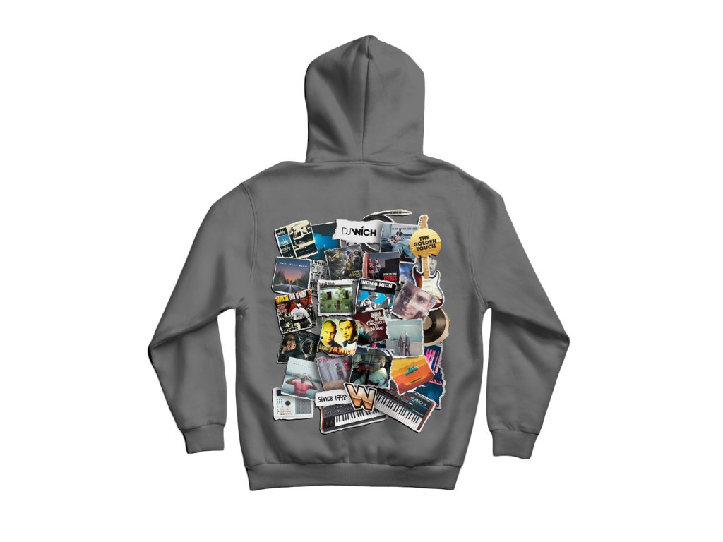 Tahle mikina je poctou hudbě, která definovala generace. Přední strana drží minimalistickou linku – logo DJ Wich. Zadní strana naopak vypráví celý příběh: koláž diskografie, která mapuje zásadní projekty a období jeho tvorby.